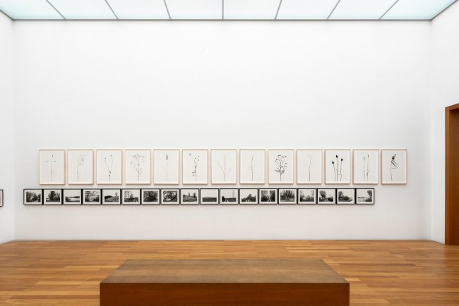 Thirty-three black-and-white photographs of the path now form the basis of this work. They convey an impression of the character and topography of this Ice Age-shaped landscape, as well as the nature of its economic use. These are complemented by five color photographs that reflect the changing light and weather throughout the seasons. Studying the flora along the path resulted in 128 photographs of blossoms, 29 photographs of plants, and 25 images of leaves from the trees and shrubs in this area. Representing the wildlife, my brother, Martin Schink, created colored drawings of all 82 bird species observed. My book, *Am Weg* (On the Path), published in 2025 by Hartmann Books, contains not only this extensive visual material but also lists of the recorded animal and plant species and a literary text by the poet and writer Uwe Kolbe.