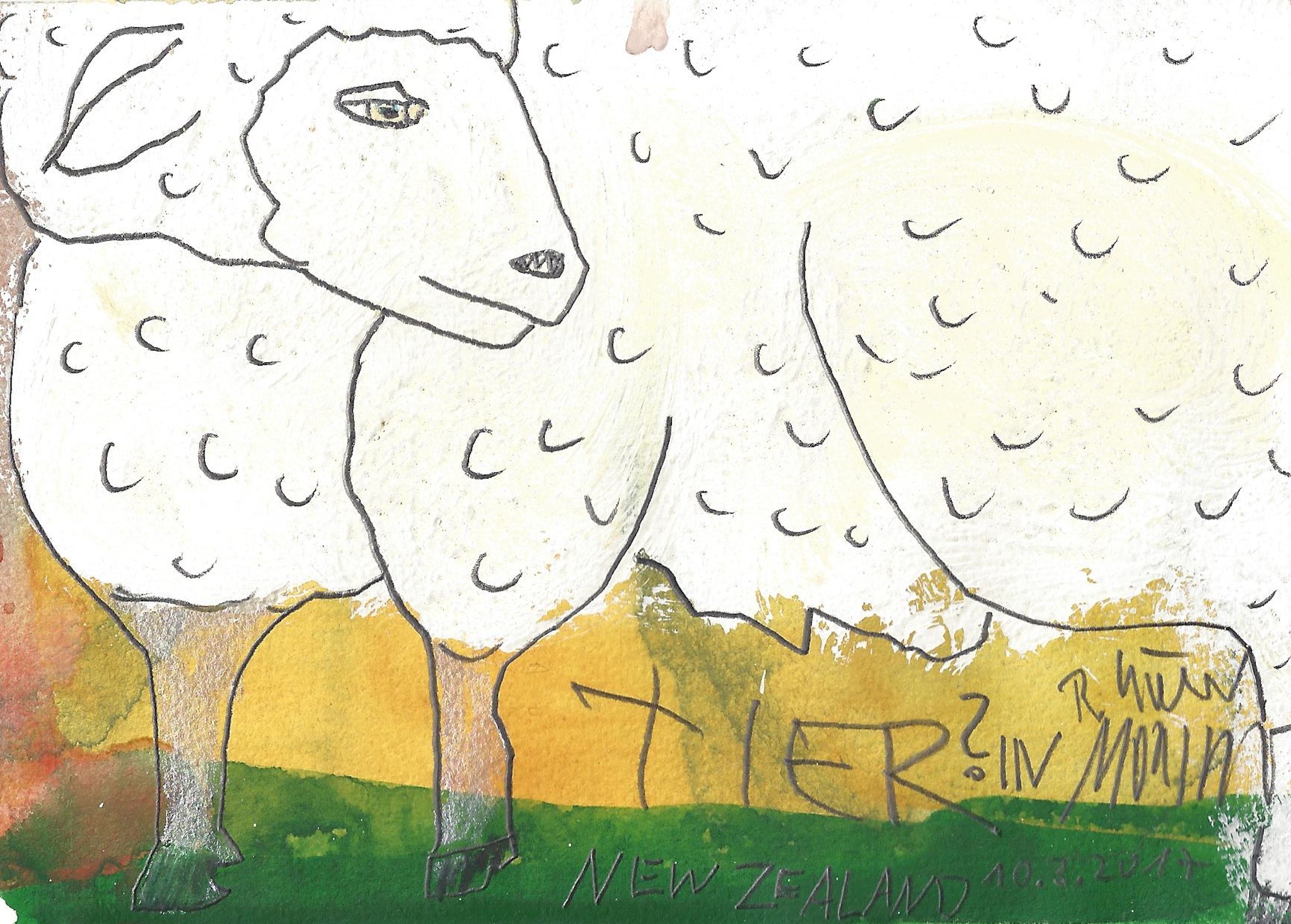 Tier?, 2017, Mischtechnik auf Bütten, 10,5 x 15 cm