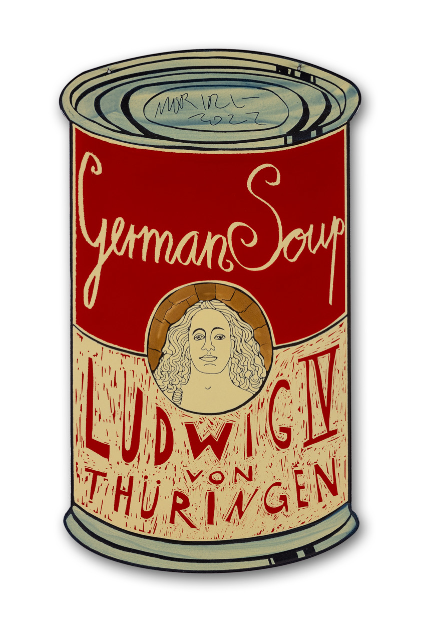 Ludwig II. von Thüringen (German Soup), 2022, Emailmalerei auf Stahl, 60 x 34 cm, 2000 Euro