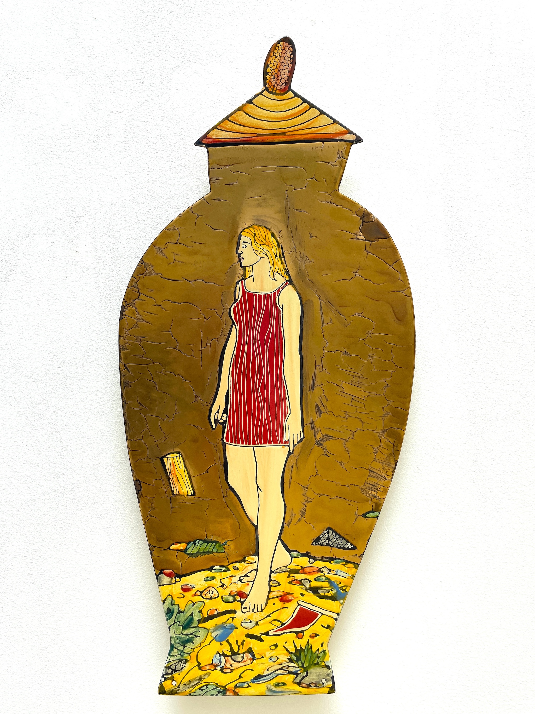 Planungssicherheit (Vase) Emailmalerei auf Stahl, 60 x 28 cm, 2200 Euro