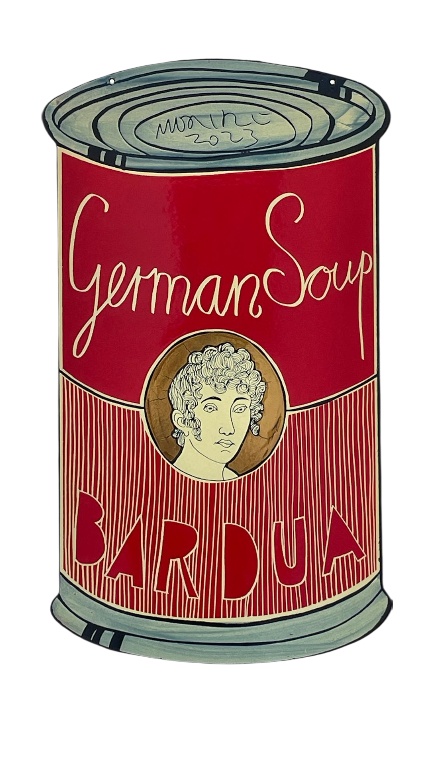 Bardua (German Soup), 2022, Emailmalerei auf Stahl, 60 x 34 cm, 2000 Euro