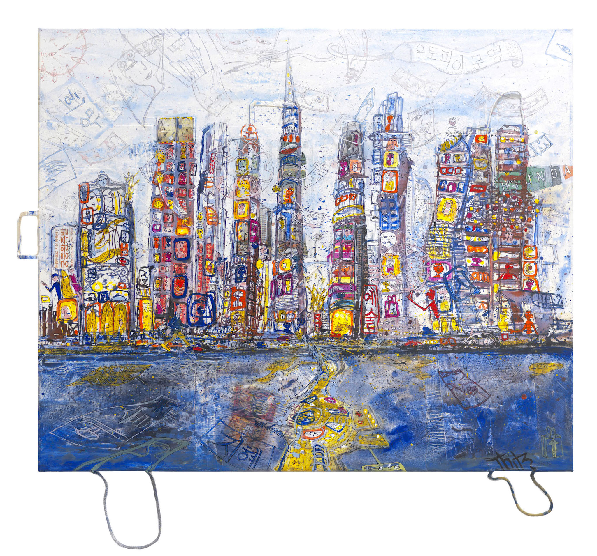 Seoul UC, 2018, Acryl und Tüten auf Leinwand, 100 x 120 cm