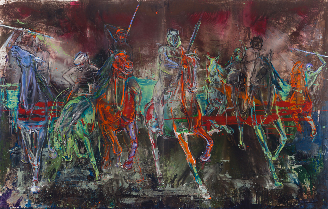 Die Horde, 2016, Mischtechnik auf Leinwand, 230 x 360 cm