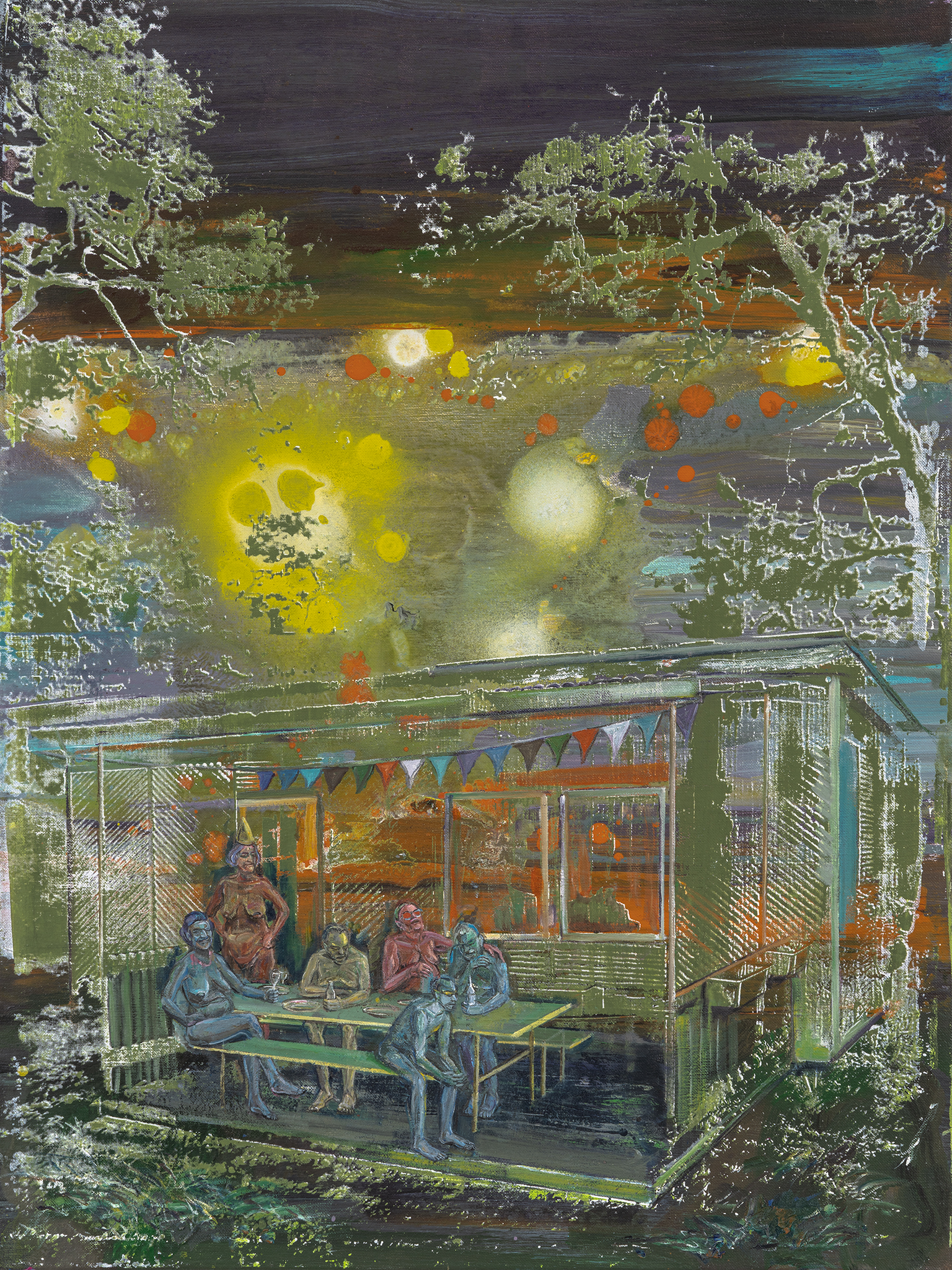 Die Sause, 2023, Siebdruck/ Öl und Acryl auf Leinwand, 80 x 60 cm
