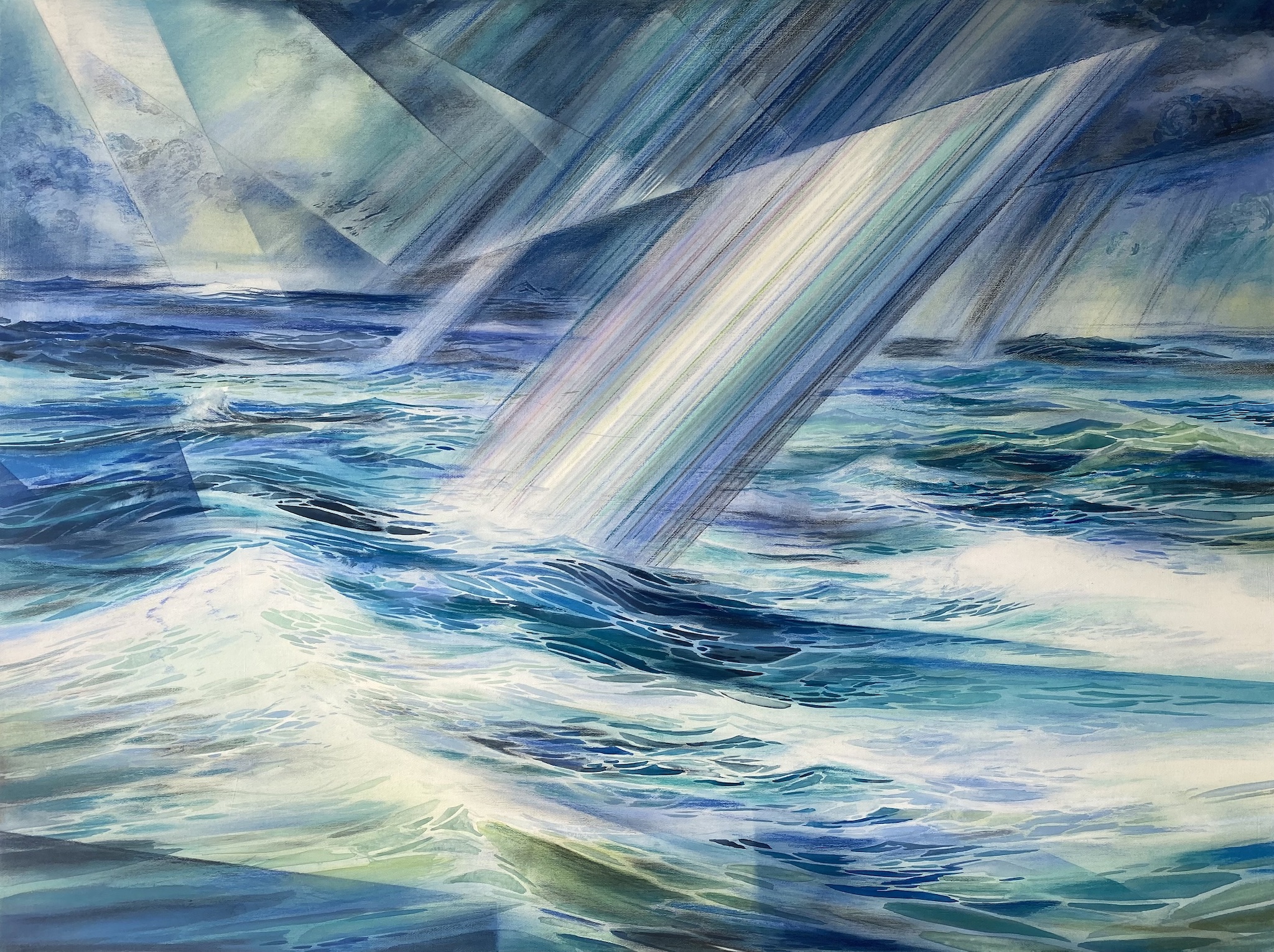 Strahl, 2025, Pastell, Aquarell und Bleistift auf Leinwand, 60 x 80 cm, 4600 Euro