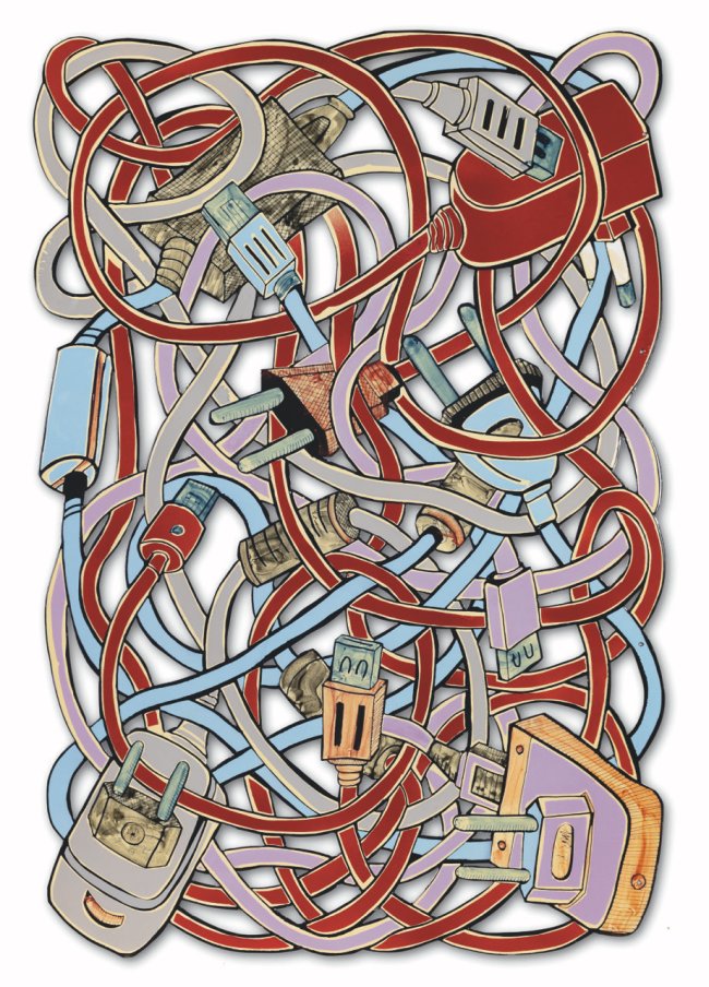 Kabelsalat, 2021, Emailmalerei auf Stahl, 170 x 120 cm, 10.000 Euro