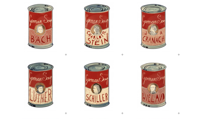 German Soup, von Charlotte von Stein bis Wieland, 2021, Emailmalerei, 60 x 34,5 cm, je 2.000 Euro