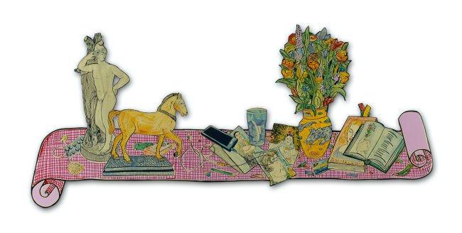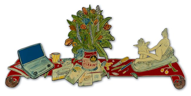 Er hat den Boden voll Skulpturen, 2020, Email, 123 x 48 cm, 4.000 Euro