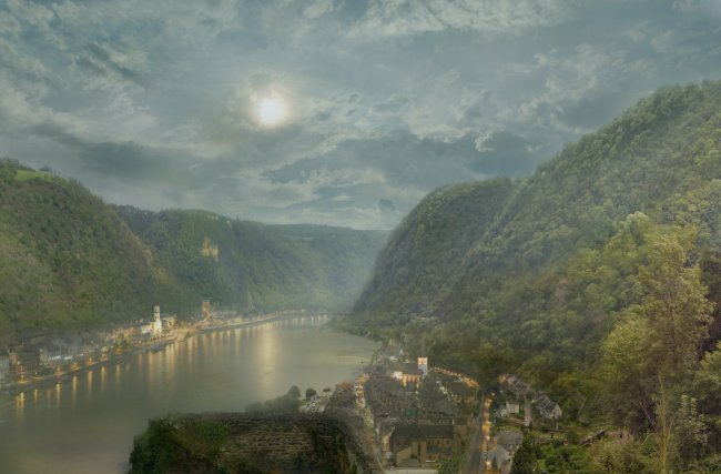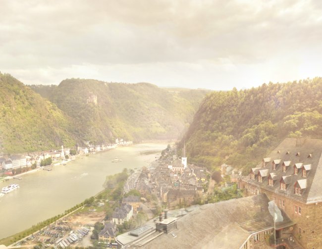 From Rheinfels looking over St. Goar to Burg Katz (nach JMW Turner, 1817), 2014, LED Lightbox, Auflage 5 + 1 AP, 21 x 32,5 x 4 cm, 4.000 Euro