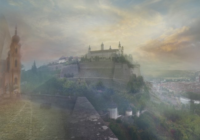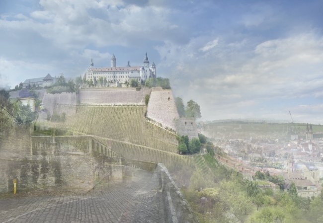 Würzburg from the path to the Käppele (nach JMW Turner, 1830), 2018, LED Lightbox, Auflage 5 + 1 AP, 19,1 x 27,8 x 4 cm, 3.800 Euro