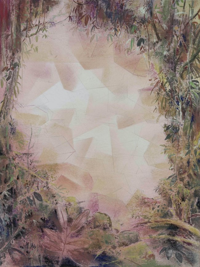 Waldkristall, 2023, Pastell und Aquarell auf MDF, 100 x 70 cm, 5100 Euro