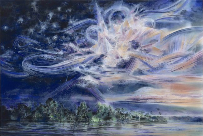 Cuyabeno, 2023, Pastell und Aquarell auf MDF, 180 x 120 cm, 9000 Euro