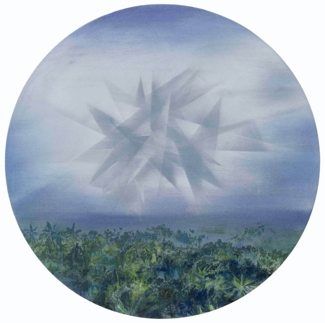 Seeker, 2023, Pastell, Tusche und Aquarell auf MDF, D 145 cm, 8700 Euro