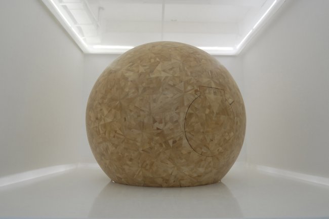 Ebenso wird eine der Sternen-Sphären Masuyamas im Angermuseum stehen. Nach der Premiere der neuen Kugel auf der Art Karlsruhe, wird in Erfurt der kleinere Vorgänger ausgestellt, in dessen Inneren jedoch der gleiche beeindruckende Sternenhimmel zu sehen ist. Die Sphäre „0“ ist eine begehbare Holzkugel, perforiert mit 30000 Glasfaserstiften unterschiedlicher Farbe und Stärke, welche die Gestirne der nördlichen und der südlichen Hemisphäre abbilden. Wer die Kugel besteigt, erblickt nach allen Seiten Sterne, als schwebte man allein im Weltraum.