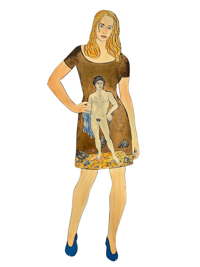 Moritz Götze, Herkules lebt, Emaildame, 2020, Emailmalerei und Gold auf Stahl, 120 x 42 cm, 4000 Euro