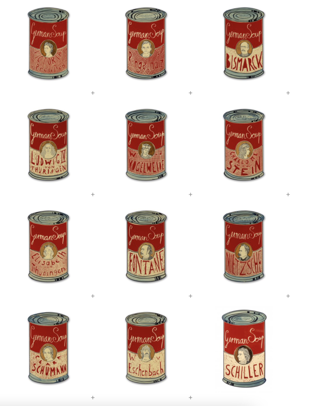 Moritz Götze, German Soup Edition, 2022, Emailmalerei auf Stahl, 60 x 34 cm, je 2000 Euro