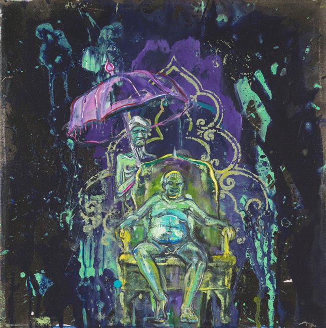 Undine Bandelin, Der König, 2019, Siebdruck, Öl und Acryl auf Leinwand, 40 x 40 cm, 1600 Euro