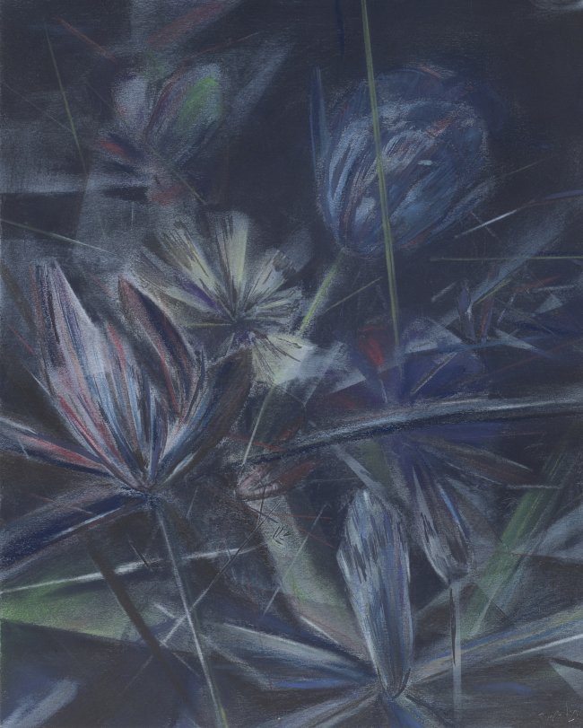 Tulips & Shards, Pastell, Aquarell und Kohle auf grundiertem MDF, 40 x 32 cm, 2.200 Euro