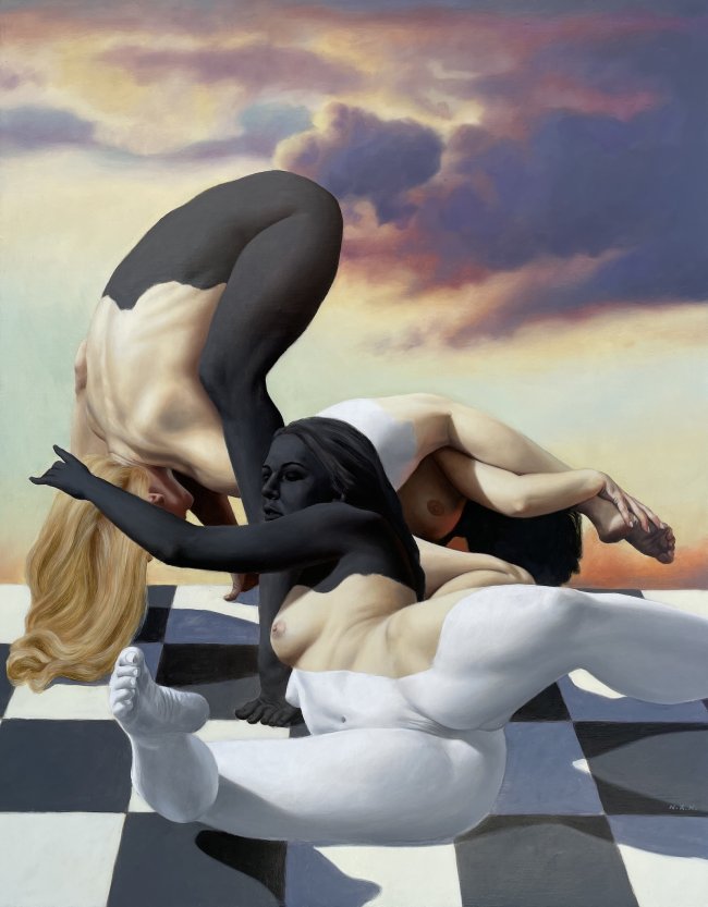 Marten Schädlich, Duell, 2022, Eitempera auf Leinwand, 140 x 110 cm, 6000 Euro