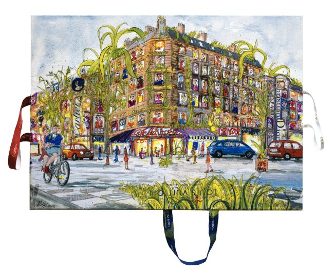 Paris Cafe Utopique, 2022, Acryl und Tüten auf Leinwand, 50 x 70 cm, 6600 Euro