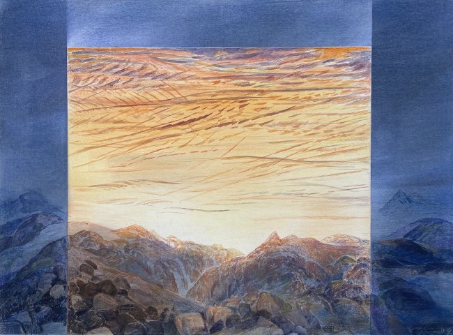 Sunset Display, 2022, Pastell und Aquarell auf grundiertem MDF, 35 x 45 cm, 2.400 Euro
