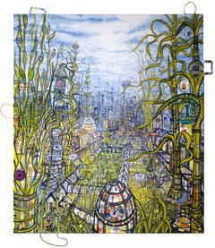 Rio Utopian City, 2021, Acryl und Tüten auf Leinwand, 200 x 140 cm, 18700 Euro