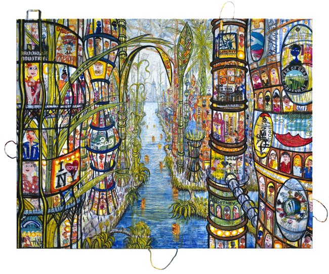 New York Utopia at Brooklyn, 2020, Acryl und Tüten auf Leinwand, 140 x 180 cm, 16.000 Euro