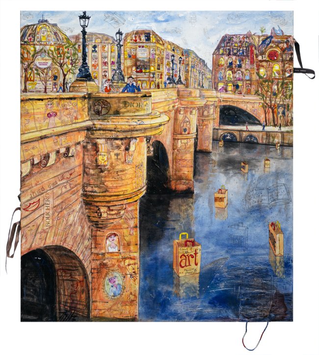 Paris Entre Nous, 2021, Acryl und Tüten auf Leinwand, 160 x 140 cm, 15.000 Euro