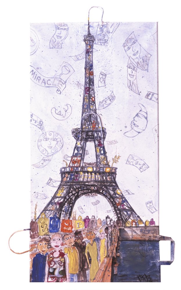 Paris Tour Miracle, 2017, Acryl und Tüten auf Leinwand, 100 x 50 cm, 7.500 Euro