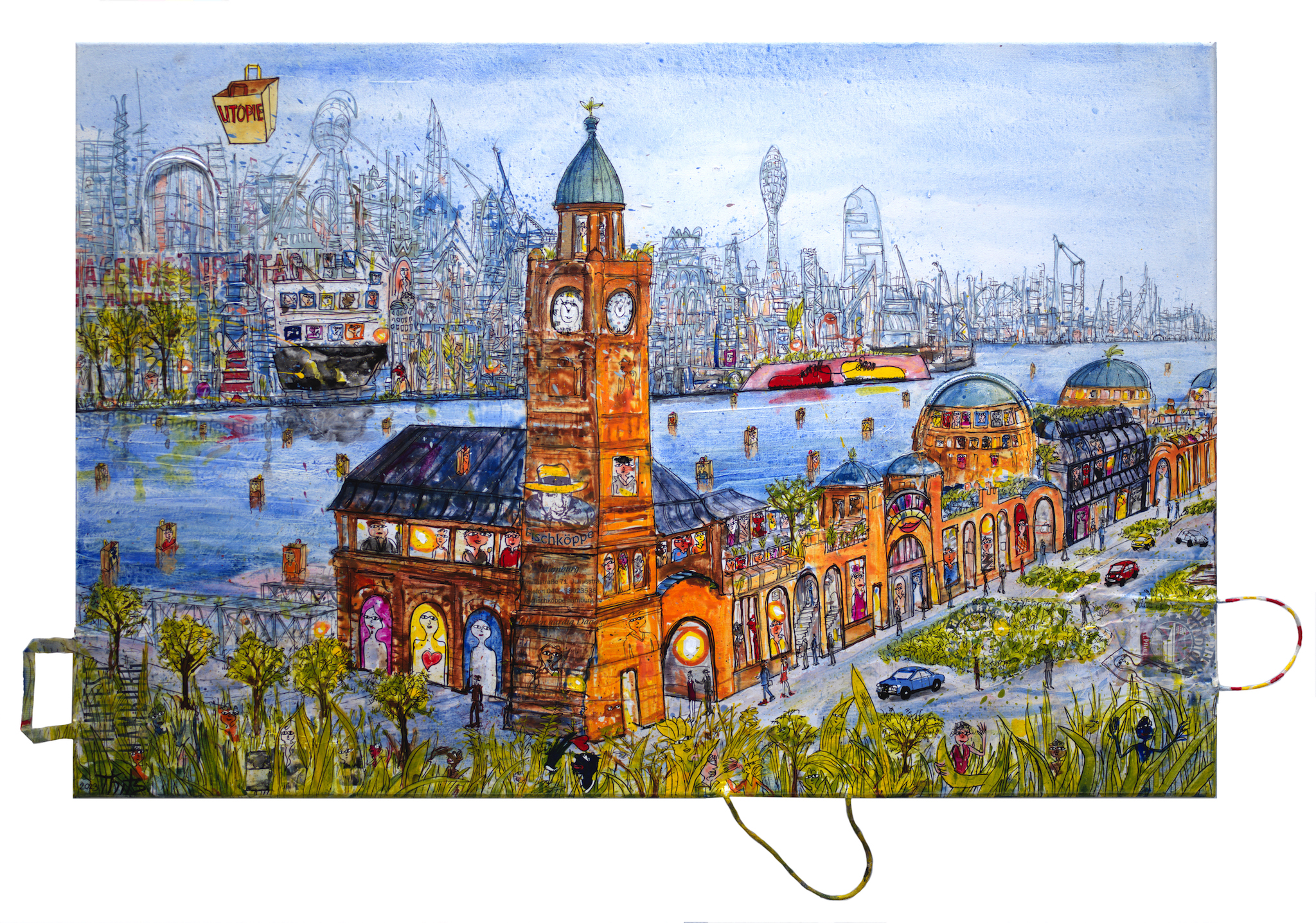 Thitz: Hamburg, 2023, Acryl und Tüten auf Leinwand, 80 x 120 cm, 11000 Euro