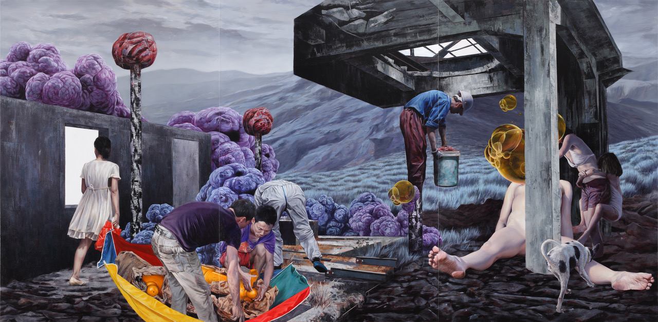 Danaë & Co, 2016, oil on canvas, 220 x 450 cm