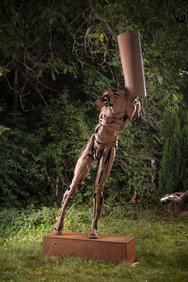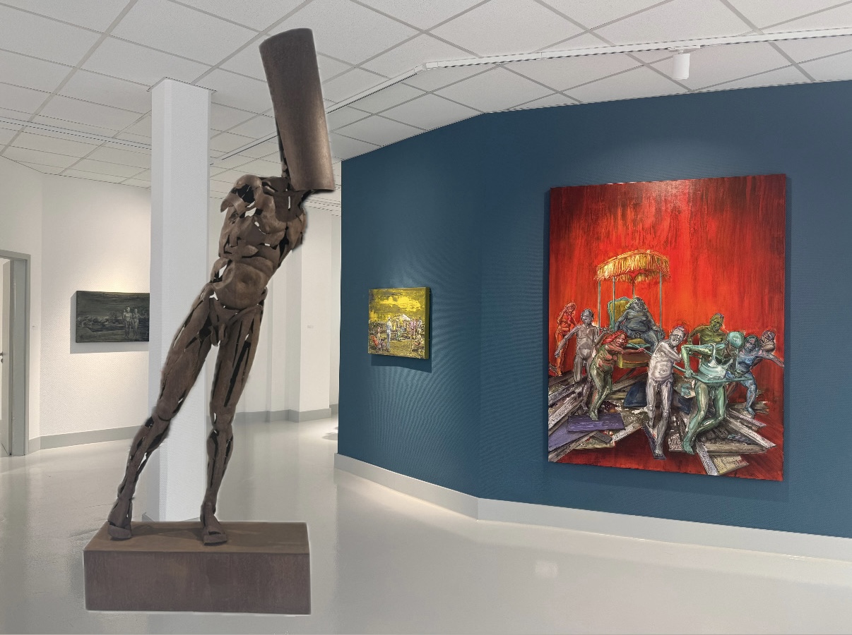 In the double exhibition by Undine Bandelin and Dana Meyer, steel sculptures meet painting and form social allegories with a strong presence. Dana Meyer's freely forged steel figures oscillate between power and poetry, lending the material a surprising liveliness. Undine Bandelin transforms the pictorial space into a stage on which drama and everyday life lie close together.