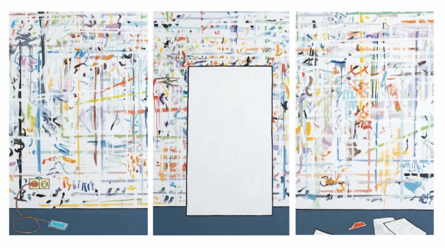 Kabelsalat, 2021, enamel on steel, 170 x 120 cm, 10.000 Euro