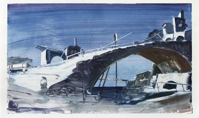 Brücke an der Lagune, nach Canaletto, 7. Fassung, 2021, Monotypie, 59 x 99 cm, gerahmt, 4000 Euro
