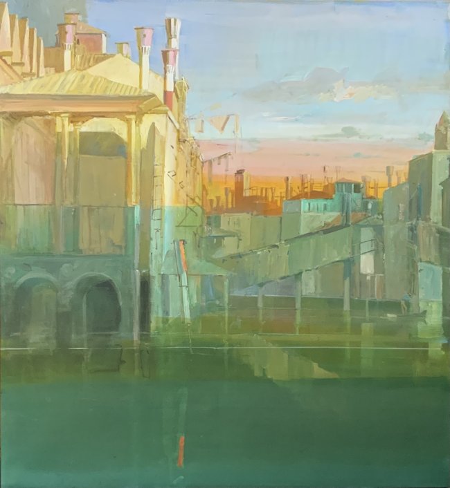 Jörg Ernert, Rialto (Nach Carpaccio) (2. Fassung), 2023, acrylic on canvas, 130 x 120 cm