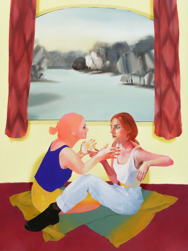 Ellen Akimoto, Speaking Intently, 2019, oil and acrylic on canvas, 200 x 150 cm